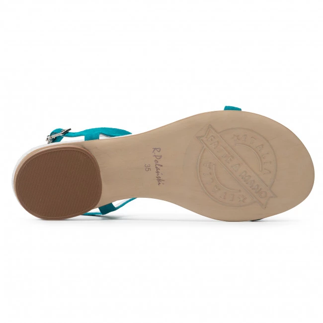 Sandales R.POLAŃSKI – 939 Turkus Zamsz ☝ Sandales casual femme R.Polański à prix avantageux